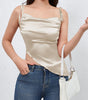 Slip into a silhouette that whispers modern romance—effortlessly elegant, softly sculpted, and wholly confident. The Asymmetrical Tie Shoulder Cami from Aloura is a chapter in refined femininity that elevates every moment with quiet luxury.