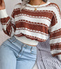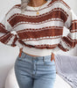 Color Block Round Neck Cropped Sweater